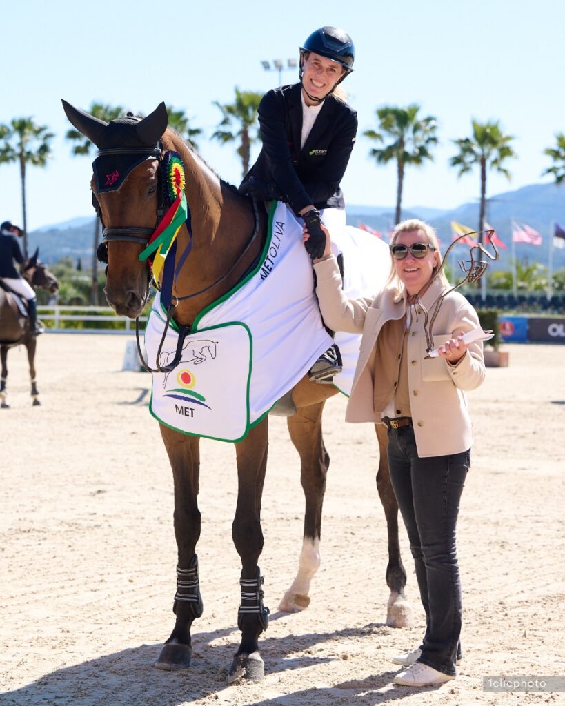 In a jump-off between eleven horse-and-rider combination, Meyer-Zimmermann – who is a familiar face at the venue in Oliva Nova – and her talented 9-year-old delivered the winning time, crossing the finish line in 38.09 seconds and besting a field of 51 participants. Axel Vandoorne (BEL) and Kaline de Fremis (Tangelo van de Zuuthoeve x Zirocco Blue) had to settle for second place with a time of 39.33 seconds, while David Simpson (IRL) on Ovidius Vd Donkhoeve (VDL Zirocco Blue x Chin Chin) took third in 40.72, followed by Gerco Schröder (NED) on Jackpot (VDL Zirocco Blue x Heartbreaker) in fourth in 42.13, and Pål Flam (NOR) aboard Mega Special DC (I’m Special de Muze x Landadel) in fifth in 42.20.