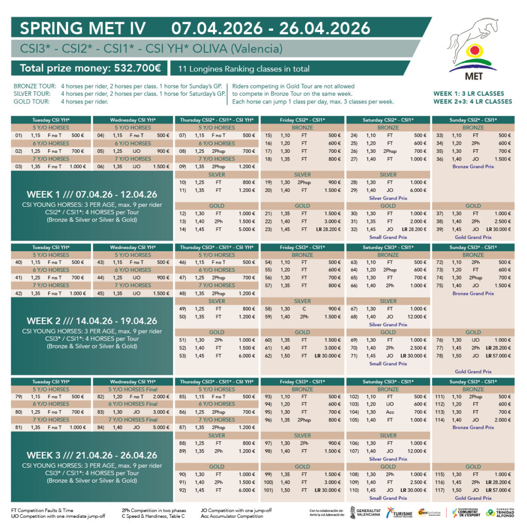 In a jump-off of thirteen, Alvarez Moya and No Nonsense TN clocked the winning time of 35.34 seconds, taking the win ahead of a group of seasoned champions; Great Britain’s 2025 European team gold medallist Donald Whitaker on Ulania 3 (Uriko x Acord II) placed second in 35.80, while Brazil’s four-time Olympian Pedro Veniss (BRA) with Nimrod de Muze Imperio Egipcio (Nabab de Reve x Tinka’s Boy) took the third place in 36.18, followed by Denmark’s two-time Olympian Andreas Schou (DEN) with Darc de Lux (Darco x Contender) – his ride for the Tokyo Olympics  – in fourth in 36.59.